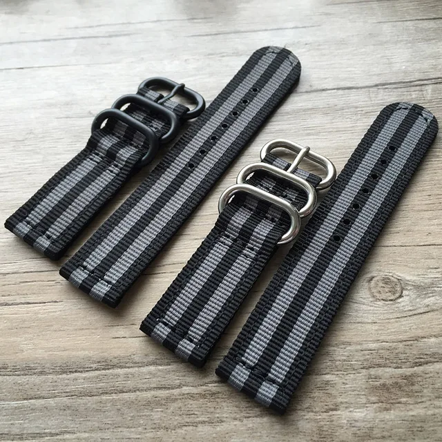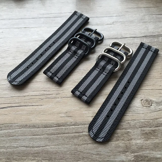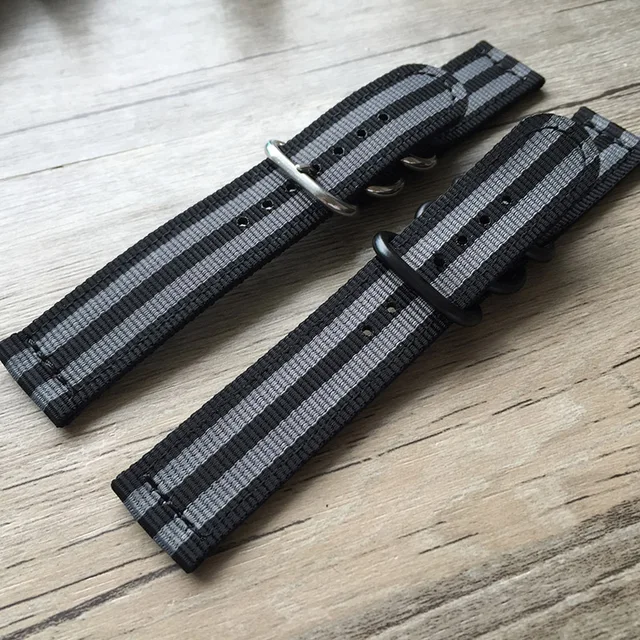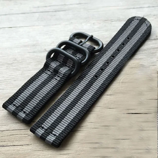 | [해외] 나일론 스트랩 손목 18 미리메터 20 미리메터 22 미리메터 24 미리메터 팔찌 실버 버클 밴드 블랙 회색 줄무늬 블랙 버클 손목 |