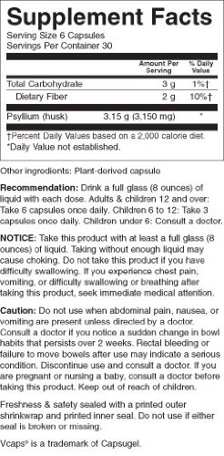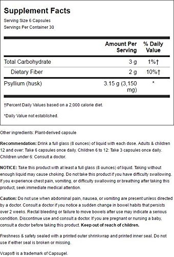 Psyllium Husks 180 CapsuleProduct DescriptionPsylium Husks are used for relief of occasional constipation (irregularity).* This product generally produces bowel movements in 12 to 72 hours.