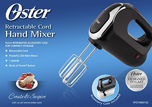 Feature : 5 variable speeds / Powerful 250-watt motor / Burst of Power button / Set of beaters included / Retractable cord for ease of use