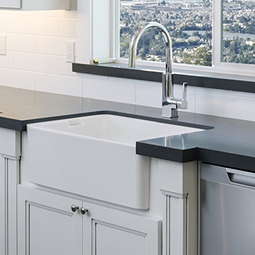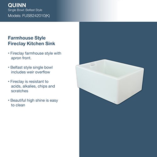 Transolid FUSB242010 Quinn 23.5-in x 19.75-in x 10-in Single Bowl Thick Wall Farmhouse Fireclay Kitchen Sink with Channeled Overflow, White