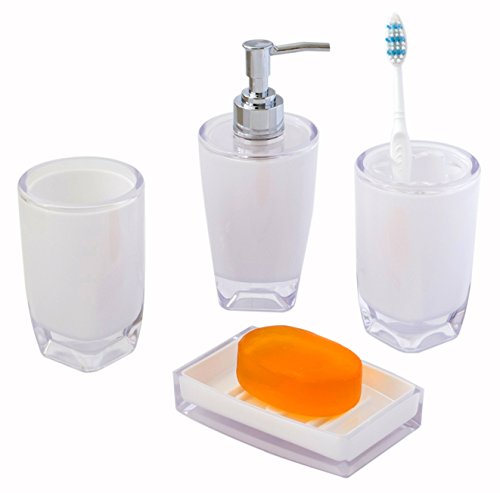 The set includes 1 tumbler, 1 toothbrush holder, 1 soap dispenser and 1 soap dish