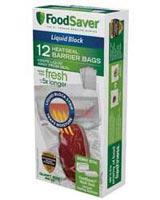 FoodSaver liquid-block bags are the ideal way to vacuum seal wet to moist foods--no mess, no leaks. The pre-cut bags come in a convenient quart size for sealing everything from savory steaks to marinated chicken and freshly caught fish.