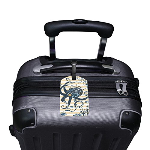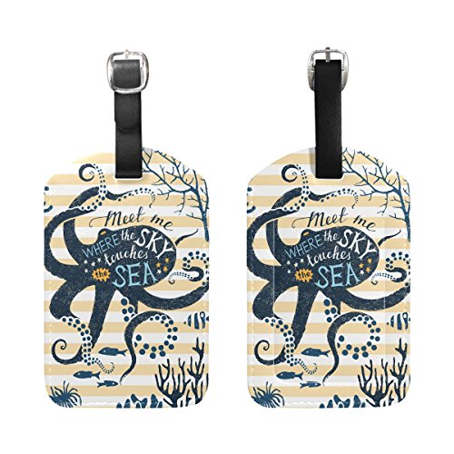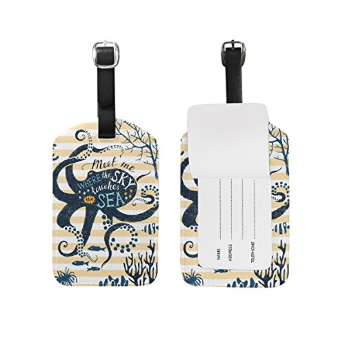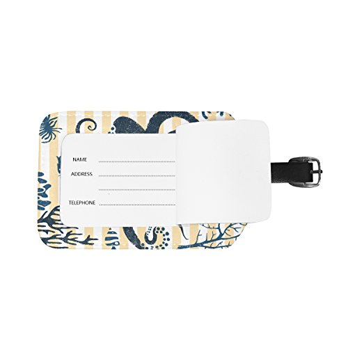 (ALAZA)/Accessories/Luggage, Bags Travel/DIRECT FROM USA/My Daily Octopus And Sea Fish Stripe Luggage Tag PU Leather Bag Tag Travel Suitcases ID Identif...