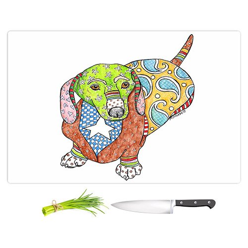 DiaNoche Designs CB-MarleyUngaroDachshundWhite2 Marley Ungaro Dachshund Dog White Cutting Boards from, Large 15" x 11"