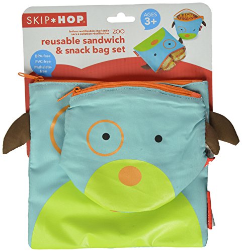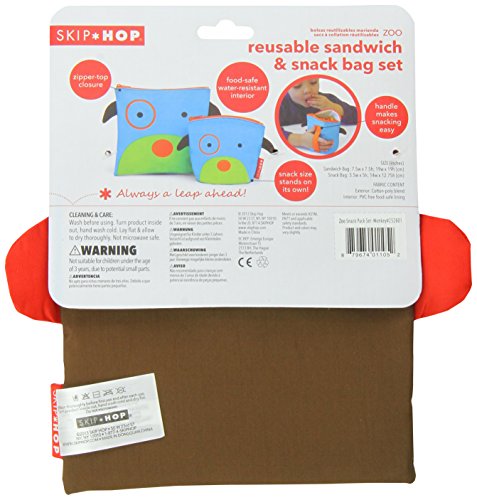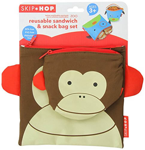 Skip Hop Zoo Reusable Sandwich and Snack Bag Set, Monkey