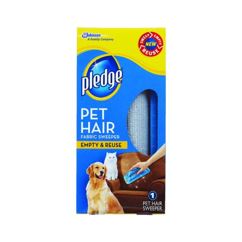 - One Pledge Fabric Sweeper picks up as much pet hair as 145 sticky roller sheets