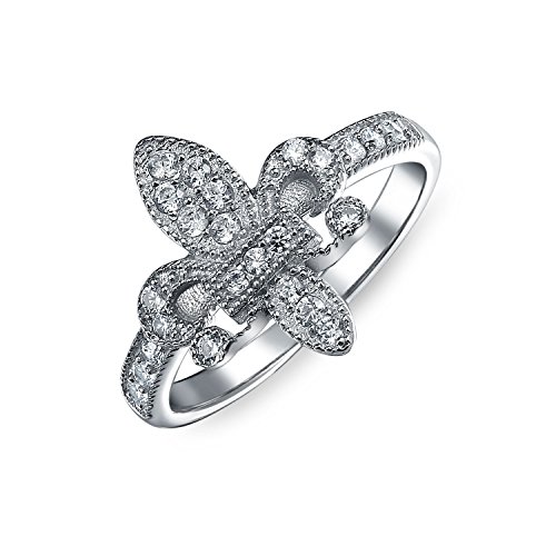 -. Title : Bling Jewelry Sterling Silver Pave Clear CZ Vintage Style Fleur de Lis Ring