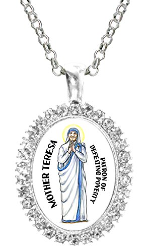 -. Title : Mother Theresa Patron of Defeating Poverty Cz Crystal Silver Necklace Pendant