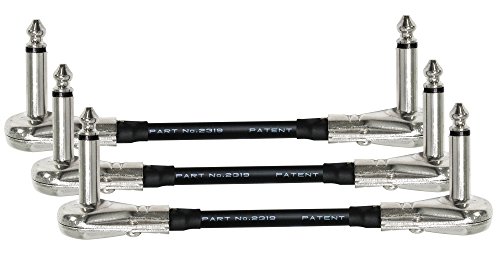 3 Units - Mogami 2319 - 4 Inch - Guitar Bass Effects Instrument, Patch Cable with ¼ Inch (6.35mm) Low-Profile, Right Angled Pancake type TS Connectors