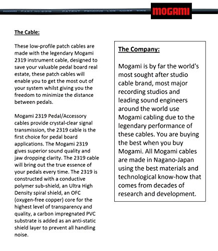 Mogami 2319 is a flexible instrument patch cable ideal for tight spaces. The PVC sub-shield, served shield & the Oxygen Free Copper core ensure higher levels of signal transparency & quality, canceling almost all electrical interference or microphonics.