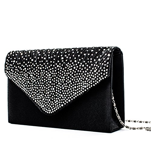 (Crossbosy Bag)/Accessories/Handbags/DIRECT FROM USA/Solid Minaudiere Bag Fashion Lady Rhinestones Diamonds Evening Bags Female Silver Chain Black CB9