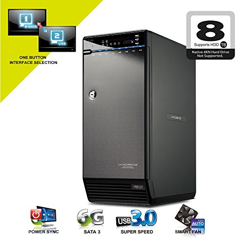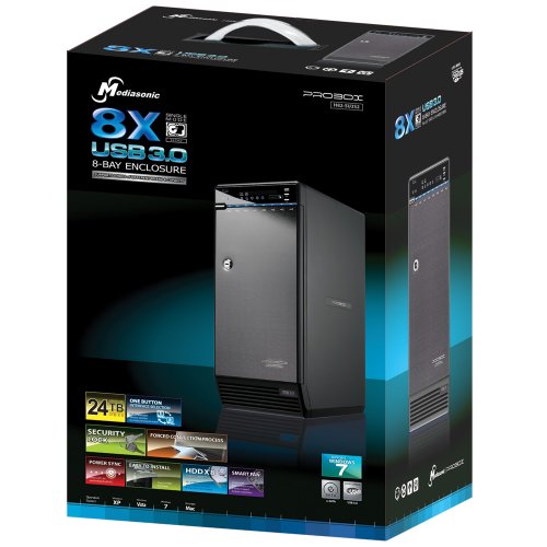 -. Binding : Personal Computers -. Brand : Mediasonic -. Color : Black -. EAN : 0629329000746 -. Feature : Support all brand of 3.5-Inch SATA I / II / III hard disk drive up to 6TB per drive, Support SATA III 6.0Gbps Hard Drive Speed / Transfer rate up to 5.0Gbps via USB 3.0 / Transfer rate up to 6.0Gbps via eSATA / One button interface selection: Switch USB 3.0 or eSATA interface by pressing one button / Supporting OS Windows 7 & 8 (32/64bit) (GPT Partition supports total capacity more than 2TB, MBR Partition support up to 2TB), Support Mac OS 10.3 or later -. HardwarePlatform : PC, Mac -. IsEligibleForTradeIn : 1 -. Label : RJ Tech -. Manufacturer : RJ Tech -. Model : H82-SU3S2 -. MPN : H82-SU3S2 -. OperatingSystem : Windows XP / Vista / 7 / 8 -. PackageQuantity : 1 -. PartNumber : H82-SU3S2 -. ProductGroup : CE -. ProductTypeName : COMPUTER_DRIVE_OR_STORAGE -. Publisher : RJ Tech -. Studio : RJ Tech -. Title : Mediasonic H82-SU3S2 ProBox 8 Bay 3.5" Hard Drive External Hard Drive Enclosure - USB 3.0 & eSATA -. UPC : 629329000746 -. Warranty : 1 year