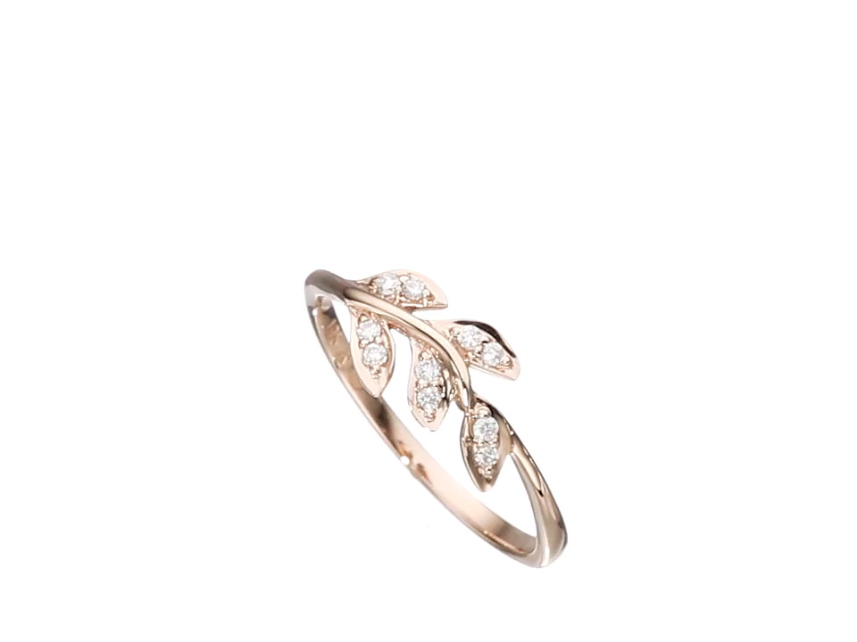 10k Rose Gold Diamond Leaf Ring (1/12cttw, I-J Color, I2-I3 Clarity), Size 7