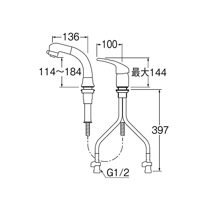 원본상품명: 三水栓 洗用 シングルスプレ混合栓 ホス引き出し式 K37610EJV-13