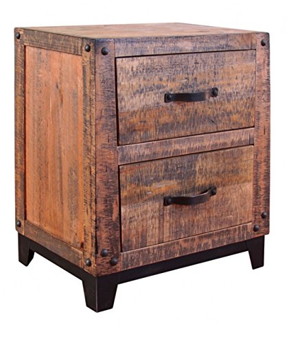 Studio : RR Publisher : RR Product Description Rustic Elliot Nightstand Solid Wood Lodge Shabby Chic DIMENSIONS: 25-1/4 x 17 x 28-1/4 WEIGHT: 62 lb Features: 1. Featuring solid wood frame construction. 2. Beautiful multi-step lacquer finish with natural top coat and a dark stain base to enhance natural wood grain. 3. Mortise and tenon case construction on all pieces. 4. Oversized custom iron pulls are unique and comfortable to use. 5. Solid wood drawers feature front dove-tail joinery and ball bearing glides. 6. As an extra feature the DSR is lined with microfiber. 7. Oversized drawers with generous room for storage. 8. Heavy, hand forged iron bases with a streamlined styling and nail-head detail on each leg. 0