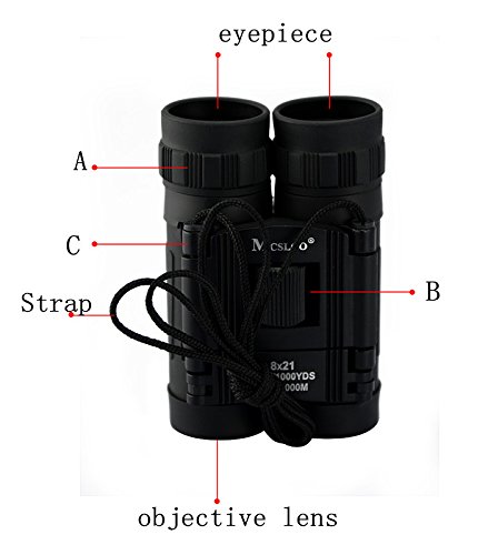 Roof-prism binocular with 8x magnification and 21-Millimeter objective diameter.