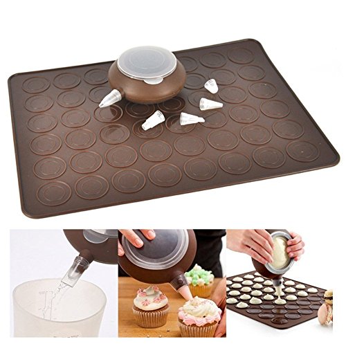 SoleSa 48-Capacity Silicone Macaron Baking Mold Set with Decoration Pen Set Butter Squeezer Baking Tool Mould Kit (Coffee)