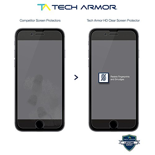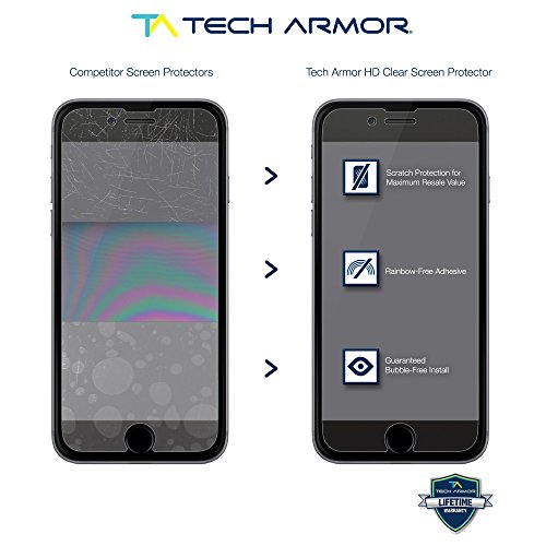 WHY SHOULD YOU BUY TECH ARMOR SCREEN PROTECTORS? DID YOU KNOW - A screen full of scratches will lower your resale value! PRESERVE YOUR INVESTMENT AND MAXIMIZE RESALE VALUE - The Tech Armor HD Clear screen protector pays for itself as your first line of line of defense against scratches that reduce the resale value of your iPhone 6/6S! If you only accept the BEST for your iPhone 6/6S, look no further: ? BEST Protection from Scratches ? BEST Way to Maximize Resale Value ? BEST Bubble Free Installation ? BEST Touchscreen Accuracy ? BEST Hassle-Free Lifetime Warranty You may be able to pay for an entire upgrade fee and get a new phone just by keeping your screen in its original, flawless condition with a Tech Armor HD Clear screen protector. HD Clear will compliment the visuals of your Apple Retina HD Display display and TruTouch technology provides 99.99% touch accuracy. COMPATIBILITY: Apple iPhone 6 & iPhone 6S (4.7 inch), All Carriers, All Models The TECH ARMOR HD Clear Screen Protector Kit Includes: - Three (3) Screen Protectors - Installation Instructions - Smoothing Card - Microfiber Cloth - Dust Removal Tape - Retail Packaging - Tech Armor Lifetime Replacement WarrantyFeature