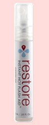 Studio : Restore Publisher : Restore Binding : Health and Beauty Product Description Hormone Free. Exclusive Formula. Works instantly to cool, hydrate and restore skin balance without hormones or daily supplements. Here's your chance to be cool ... and put your hot flashes on ice. Restore Instant Hot Flash AidTM stops the heat directly on contact. Restore is patent-pending, hot flash suppressant that instantly eliminates the symptoms of hot flashes brought on by menopause, chemotherapy or other physiological conditions. Restore immediately cools and refreshes, and is hormone-free. 0