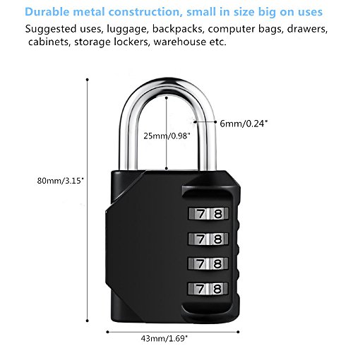 - PACKAGE-1 pack include 1 zinc alloy 4-digit resettable combination travel locks