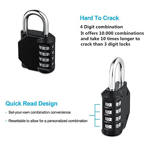 - GOOD SECURITY-4 digit combination lock offers 10000 combinations which is more difficult to crack than the 3 digit lock