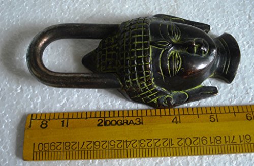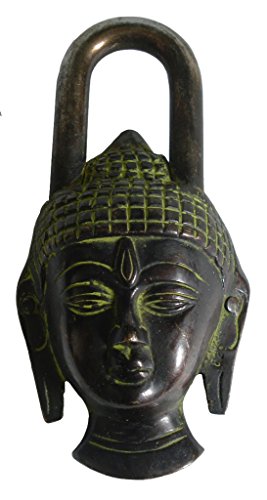 BUDDHA Face Type Padlock - Lock with Key - Brass – Black type - From Brass Blessing (5047)