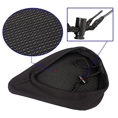 Non-Slip Textur: The non-slip texture beneath is designed to prevent slippage and absorb shock, providing you enjoyable riding experience. Moreover, the drawstring can also help tighten and secure the bike seat cushion to make sure it doesn't slip around.