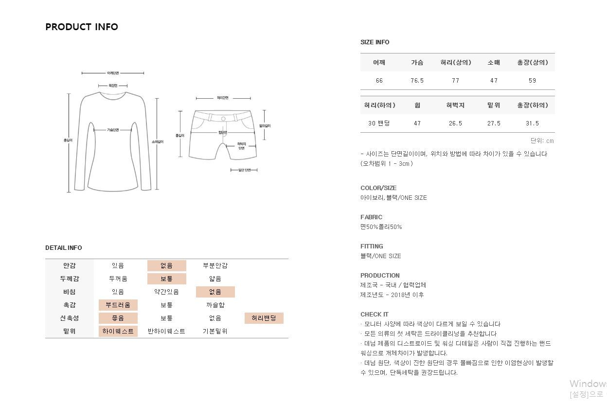 하의 전체 허리밴딩처리로 사이즈 구애없이 착용가능해요