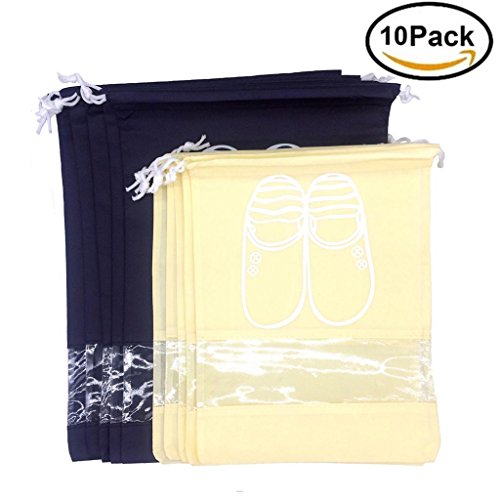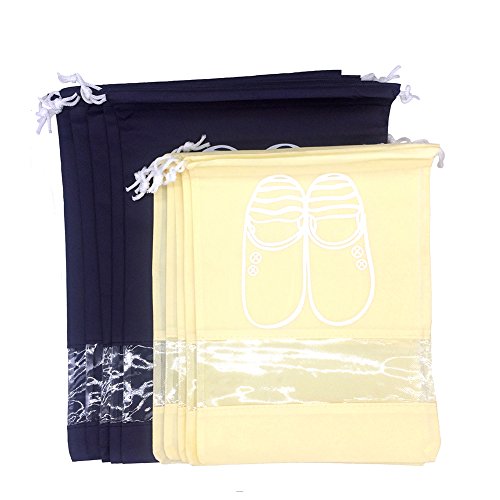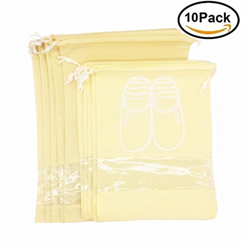 Non-woven cloth : it is known for its anti-seepage performance thus you can shake the water drops off after you carry this shoes bag in the rain. It is also breathable, non-toxic, irritable, odorless, antibacterial thus can prevent moths from eating the product inside. What's more, the bag won't mildew because of its anti-seepage performance.
