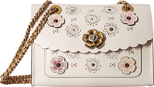Structured and lightweight, the Parker is a versatile bag that combines uptown elegance with downtown ease. This calf leather design is detailed with laser-cut Tea Rose perforations, leather appliqué and polished studs. Convert the leather chain strap from long to two short handles.
