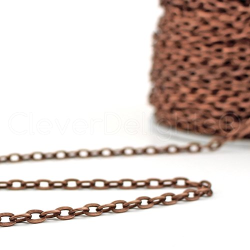 CleverDelights Cable Chain Spool - 30 Feet - Antique Copper Color - 5x7mm Link - 10 Meters - Bulk Roll