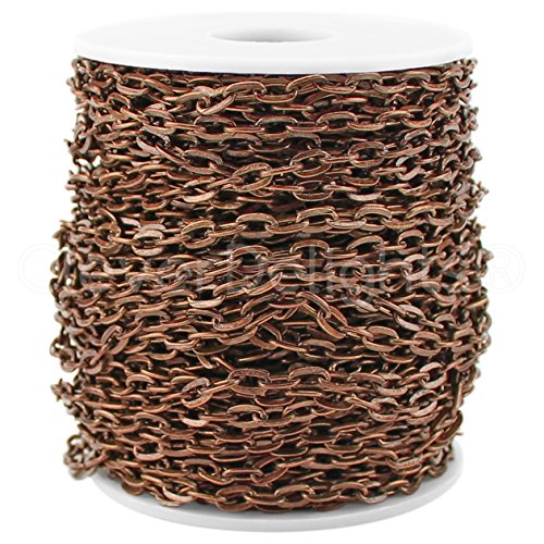 - Length: 30 feet -- 5x7mm flat oval antique-style rolo links -- Antique copper color