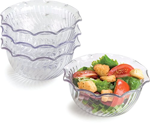 -. Feature : Clear dessert dish has a swirling tulip design that allows stacking / Dishwasher safe / Made of SAN for rigidity and resistance to breaking / Has a 4-5/8-inch dia. and holds 8 fl. oz. / NSF listed