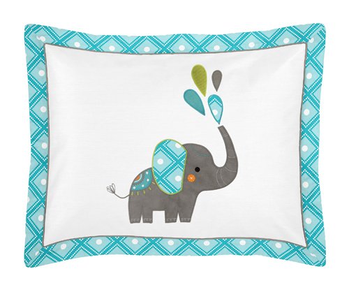 Sweet Jojo Designs Standard Pillow Sham for Mod Elephant Girl or Boy Bedding Sets
