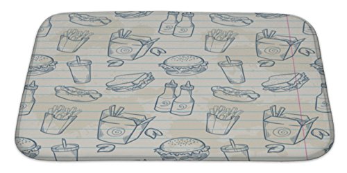 Gear New No Slip Microfiber Memory Foam Fast Food Delicious Hand Drawn Patter Bath Rug Mat, 34" X 21"