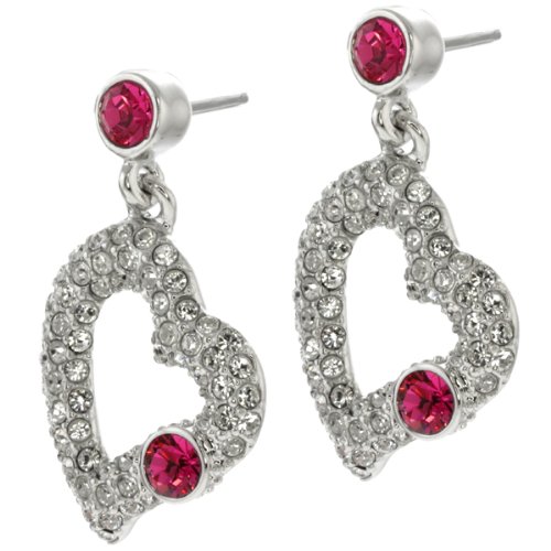 -. Title : Nirano Pink and White Heart Shape Dangle Earrings Made With Swarovski Elements
