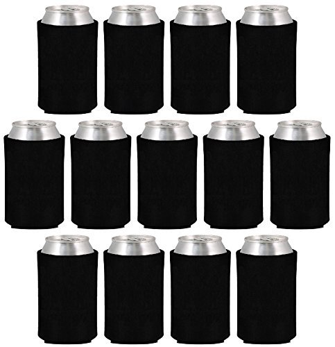 Neoprene Can Sleeves - Pack of 13 Black Plain Beer and Soda Can Cooler Covers Fit 12 oz Cans and 12 to 16 oz Glass & Aluminum Bottles by Impirilux