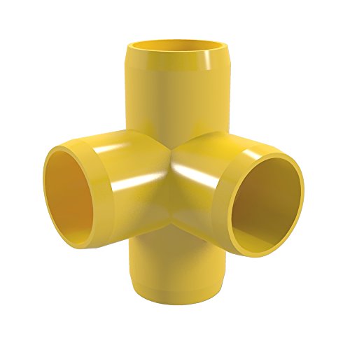 FORMUFIT F0014WT-YE-4 4-Way Tee PVC Fitting, Furniture Grade, 1" Size, Yellow (Pack of 4)