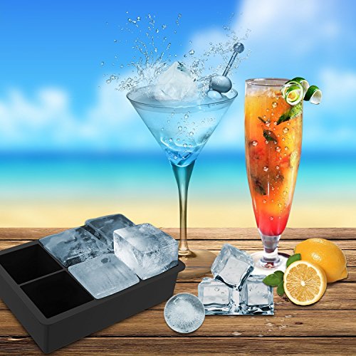 NDHT Silicone Ice Cube Tray and Ice Ball Tray Combo[2 Pack],6 X 2 inch Ice Balls & 6 X 2 inch Ice Cubes,Make Large Round Spheres and Giant Ice Cubes,BPA Free FDA Approved Reusable
