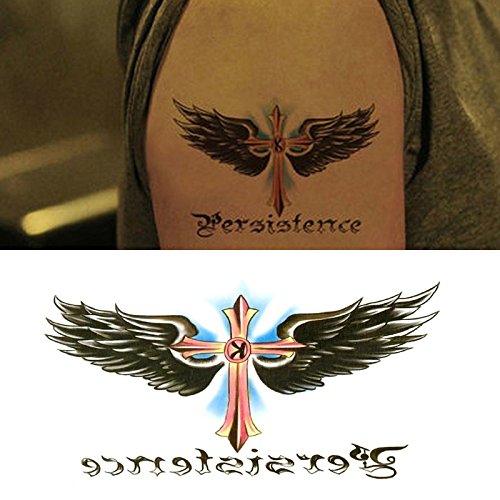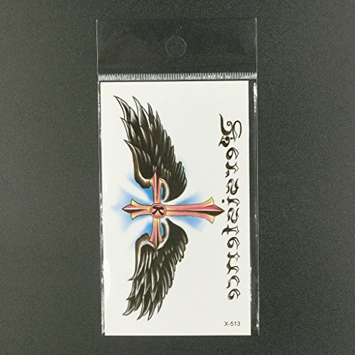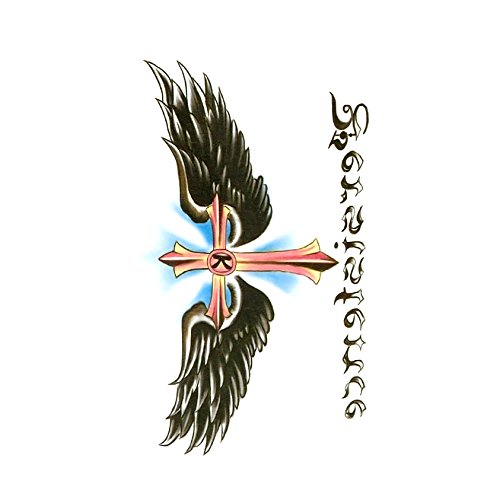 Oottati Small Cute Temporary Tattoo Cross Wing Words (2 Sheets)