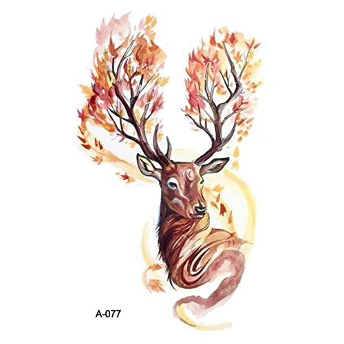 WYUEN 5 Sheets Watercolor Deer Temporary Tattoo Sticker for Men Fake Tattoo Elk New Designs Animal Body Art 9.8X6cm FA-077