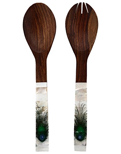 Purpledip Wooden Cooking-Serving Spoon Set With Mother Of Pearl Finish (10031)
