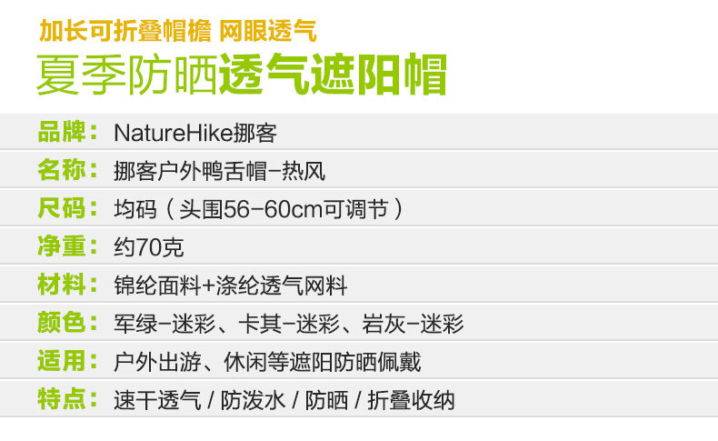 NH户外帽子男士鸭舌帽女士夏季防晒徒步遮阳帽透气速干棒球运动帽
