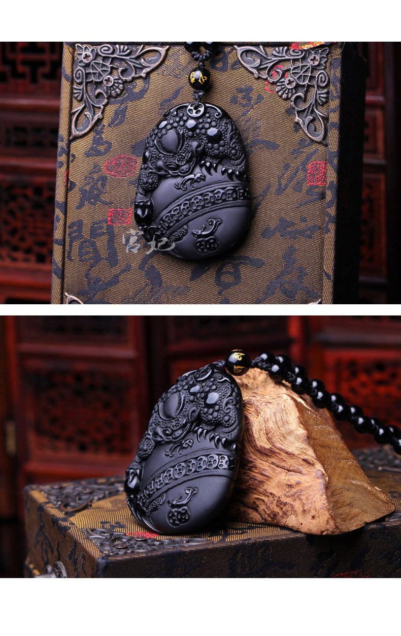 黑曜石三足玉石金蟾吊坠富贵天宝鸿运三蟾赐瑞赐福吉祥物