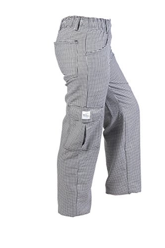 These are Genesis Women's Chef Cargo Pants in Hounds Tooth. The pants are made with yarn dye hounds tooth poly and cotton fabrics and contains two front side, two back patch, and two cargo pockets. The product contains a comfort elastic drawstring waistband with belt loops and is made with durable soft fabric. These pants are tailored for women.Feature