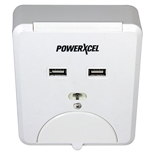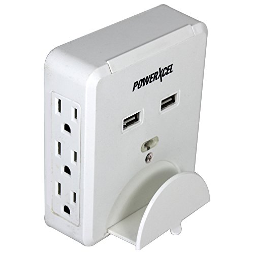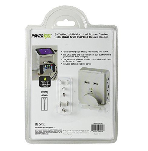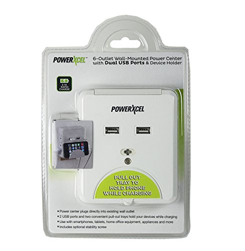 PowerXcel 6-Outlet Wall-Mounted Power Center with Dual USB Ports & Device Holder