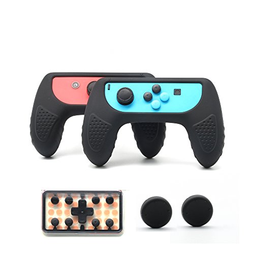 -. Feature : 対応機種:ニンテンドースイッチ Joy-Conゲーム機。 / 設計理念:テーブルモードやTVモードでゲームをする時にその快感をUPさせるためには、左右Joy-Conをコントローラーの形にした上で、ジョイコン本体の保護機能をも持つケースです。 / 快適に操作:握り部分の前側面に凸凹の形に設計され、その質感がしっかりと手にフィットしてゲームを楽しめます。さらに手が滑らずに、ゲームプレイを向上させることができます。 / 耐衝撃:衝撃に強いシリコン素材で作ったカバーは、Joy-Con本体を優しく包み込むことによって、キズや汚れなどをしにくくなります。 / 着脱便利:Nintendo Switch Joy-Con ハンドルにより設計されたカバーですから。