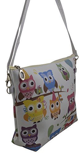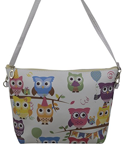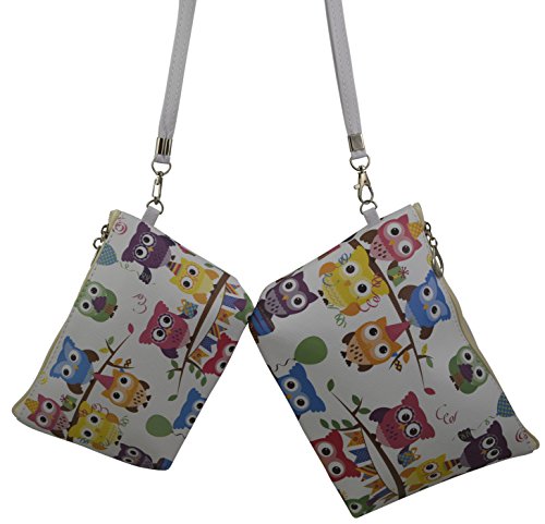 -. Title : Women's/girls Set of 3pcs Cross Body Bag, Clutch & Cosmetic Bag w/ Owl P.R.Int on Faux Leather