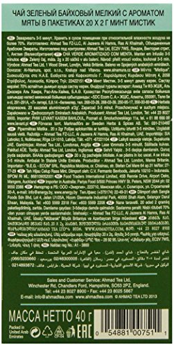 -. Binding : Grocery -. Brand : Ahmad Tea -. EAN : 0054881207515 -. Feature : Case of six boxes, each containing 20 foil-wrapped tea bags (120 total tea bags) / A unique blend of green teas with mint flavoring / Subtly scented with a delicate taste / A refreshing and healthy hot drink / Made from foreign-grown ingredients and packaged in the United Kingdom -. Label : Ahmad Tea -. Manufacturer : Ahmad Tea -. Model : 751 -. MPN : 751 -. NumberOfItems : 6 -. PackageQuantity : 6 -. PartNumber : 751 -. ProductGroup : Grocery -. ProductTypeName : GROCERY -. Publisher : Ahmad Tea -. ReleaseDate : 2006-02-27 -. Studio : Ahmad Tea -. Title : Ahmad Tea Mint Mystique Flavored Green Tea with Mint Leaves, 20-Count Boxes (Pack of 6) -. UPC : 054881207515
