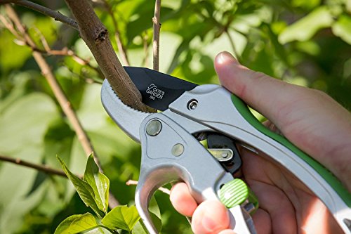 SPECIAL FEATURES ★ 7/8 inch cutting capacity anvil-type ratchet secateurs for all-purpose garden and tree pruning. Bottom serrated edge to better grip branches while cutting. High quality spring-back action. Easy to operate thumb lock. Built in oil well for blade maintenance.